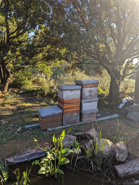 Le miel de Printemps est issu de mon rucher à Saint Bauzille de Montmel ou je travaille en partenariat avec Amandine, Sophie et Anne du Jardin de la Léquette qui ont une activité de maraichage en AB. Mes ruches sont disposées au milieu d'une ancienne pépinière entourées d'eucalyptus, de peupliers et d'un magnifique saule tortueux.