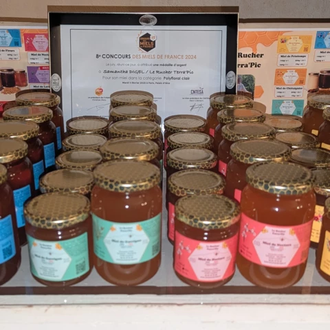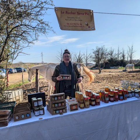 C'est ainsi qu'en 2024, le Rucher Terra'Pic est né de la fusion entre la Terre d'où je viens et le Pic Saint Loup ou je me suis établie. Le nom Terra'Pic est un clin d'oeil à l'Apithérapie. Reconnue depuis des millénaires, cette dernnière désigne l'usage des trésors issus de la ruche pour le bien-être, la santé ou encore la beauté.