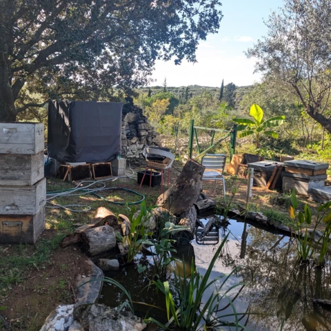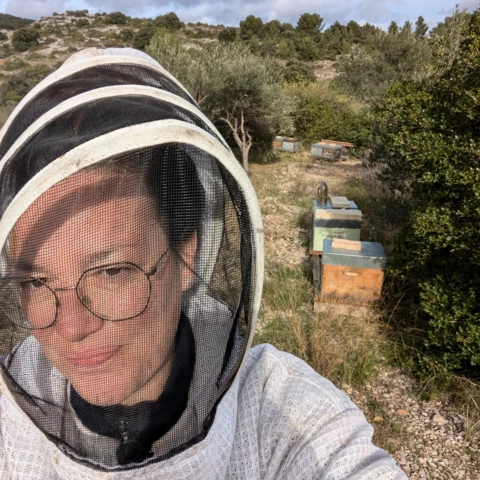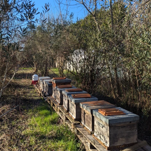 Établie à Argelliers, à une vingtaine de kilomètres au nord ouest de Montpellier, avec une vue imprenable sur le Pic Saint Loup, je veille actuellement sur une centaine de ruches habitées par des abeilles de la race Buckfast certifiés AB.